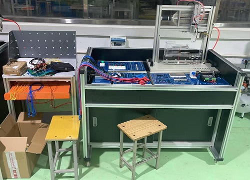 13、智能物料搬運(yùn)裝置:配置雙軸機(jī)器人作為裝配的執(zhí)行機(jī)構(gòu),具有X軸、Y軸兩個(gè)方向的執(zhí)行能力,可完成智能抓取物料放料等功能;配置有行程開關(guān),光電傳感器,光纖傳感器等,可確保各執(zhí)行器的準(zhǔn)確定位;超出最大行程時(shí),具有硬件自動(dòng)保護(hù)功能,確保系統(tǒng)安全及人身安全;本裝置為通用的模塊化的多功能裝置,各功能端口完全開放,可以能過不同的接線來完成各種不同的功能,為學(xué)生的創(chuàng)新設(shè)計(jì)提供了廣闊的發(fā)揮空間。
