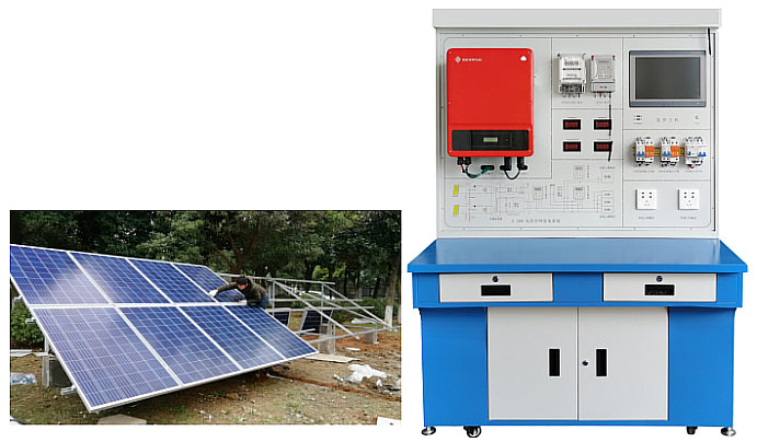 分布式太陽(yáng)能光伏并網(wǎng)發(fā)電教學(xué)系統(tǒng),分布式太陽(yáng)能光伏并網(wǎng)發(fā)電實(shí)驗(yàn)設(shè)備,分布式太陽(yáng)能光伏并網(wǎng)發(fā)電實(shí)驗(yàn)裝置主要由光伏組件方陣及其支撐支架、直流匯流箱、防雷系統(tǒng)、并網(wǎng)逆變器、交流配電箱、監(jiān)控系統(tǒng)及其連接線纜等組成。