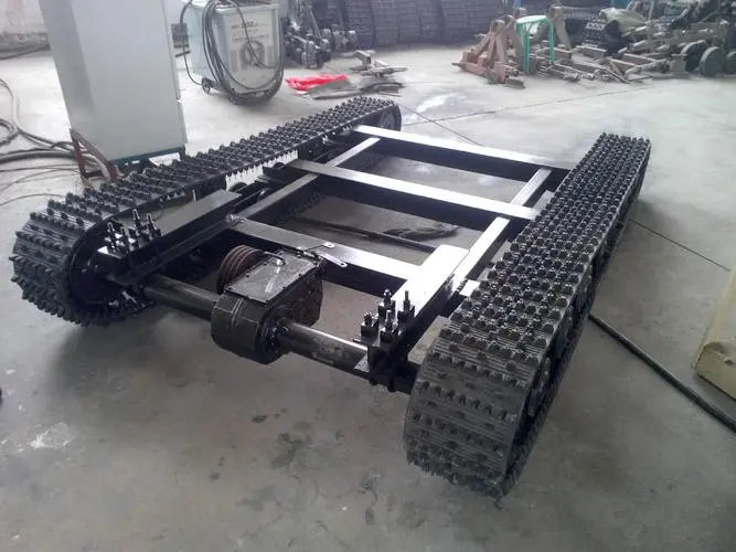 橡膠履帶底盤實(shí)訓(xùn)裝置,橡膠履帶底盤實(shí)訓(xùn)設(shè)備,橡膠履帶底盤實(shí)訓(xùn)臺(tái)采用建筑機(jī)械型,具有良好的行駛性能,支重輪、導(dǎo)向輪采用深溝球軸承,一次性加黃油潤(rùn)滑,免使用中維護(hù)和保養(yǎng)加油;驅(qū)動(dòng)齒輪采用合金鋼并經(jīng)淬火處理,耐磨性好;底盤配有行星齒輪箱與插裝式液壓馬達(dá)。