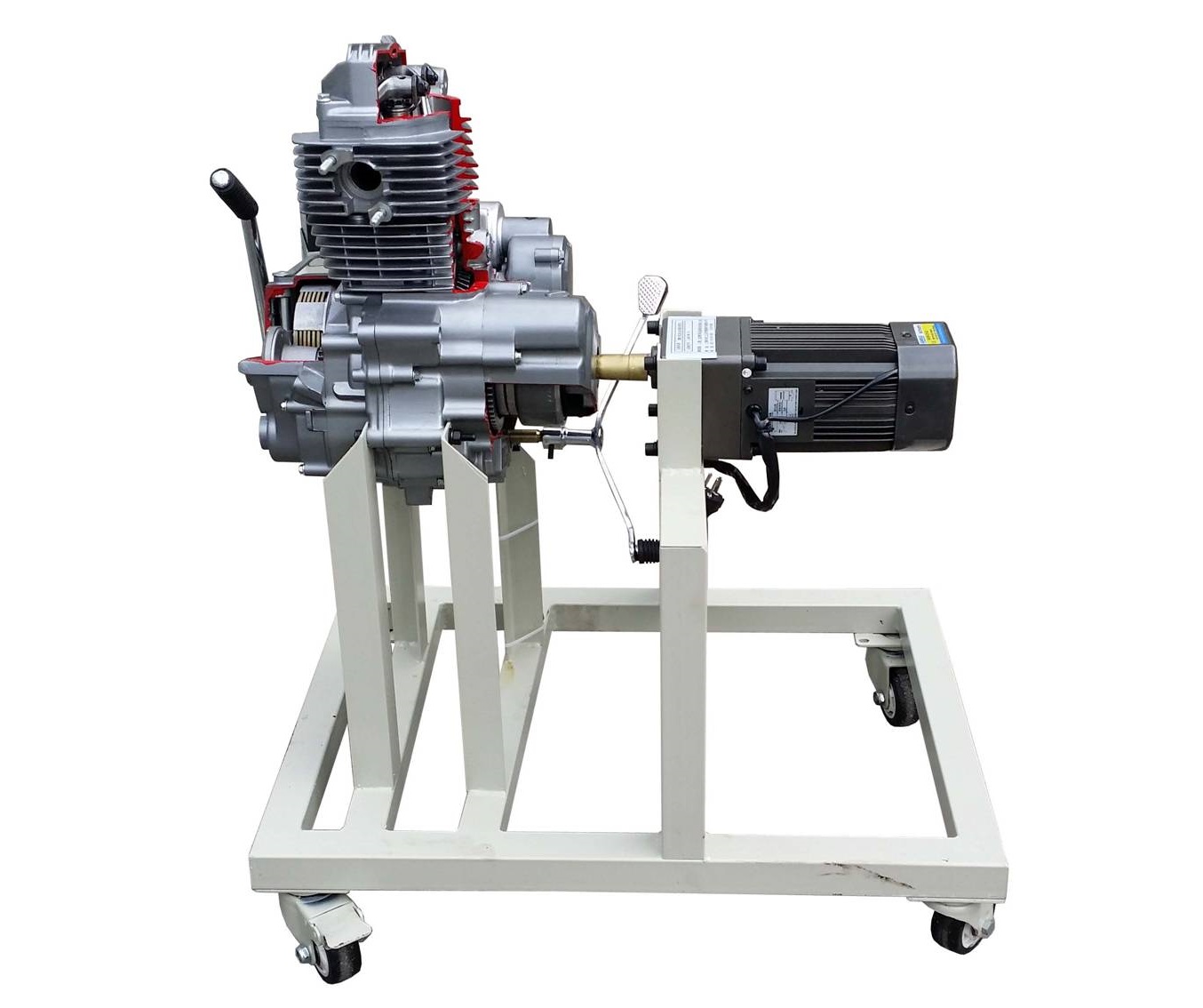 單缸汽油發(fā)動機模型,單缸汽油發(fā)動機教學(xué)模型,單缸汽油發(fā)動機教學(xué)設(shè)備采用125C單缸汽油發(fā)動機總成進行剖面處理,各部件齊全,剖面位置合理,能全面展示單缸汽油發(fā)動機內(nèi)外部結(jié)構(gòu)和部件的運動情況,適用于汽油發(fā)動機原理和機械機構(gòu)的教學(xué)。