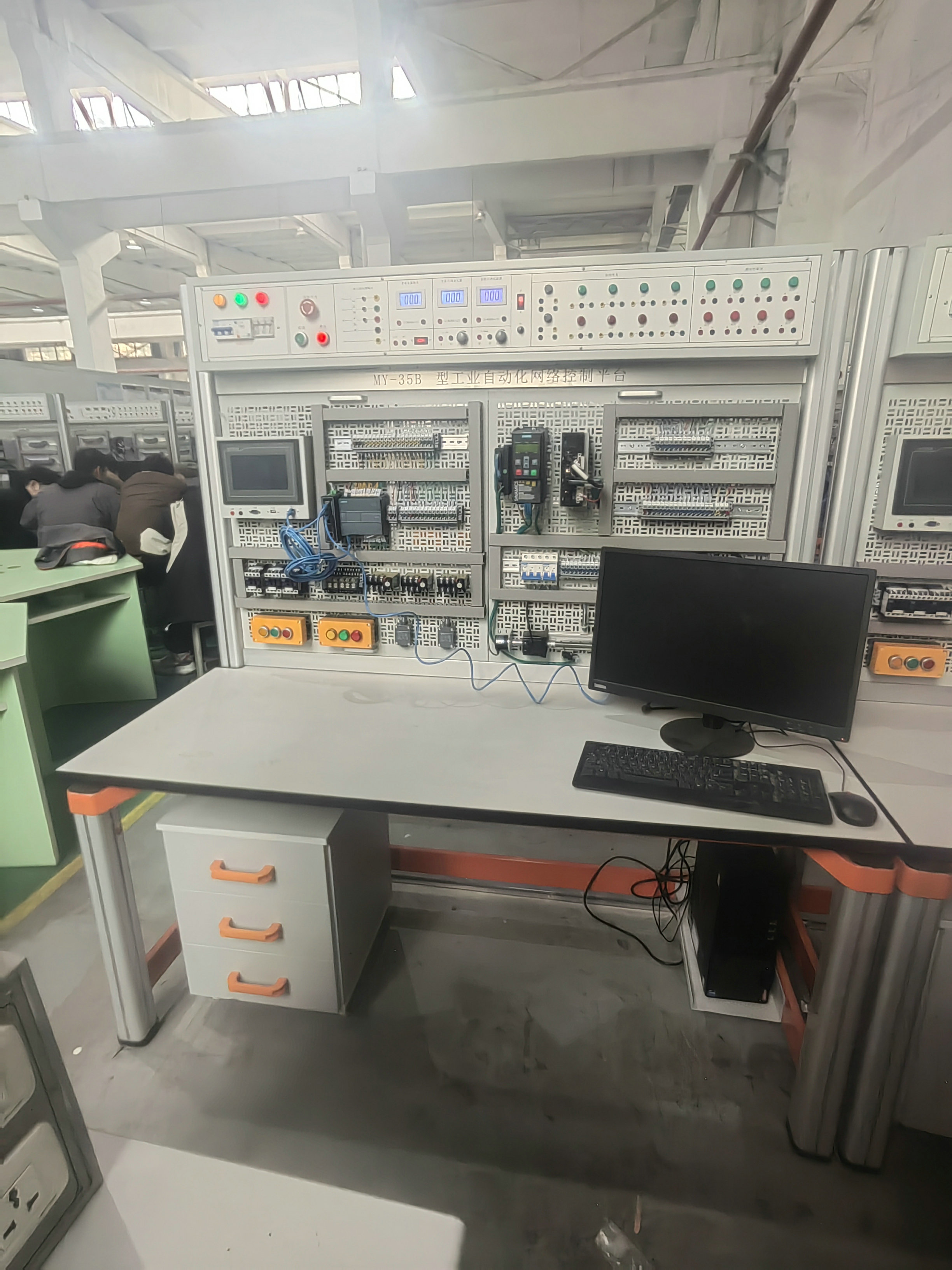 工業(yè)自動化網(wǎng)絡控制實訓臺,工業(yè)自動化網(wǎng)絡控制實訓裝置,工業(yè)自動化網(wǎng)絡控制實訓設備以網(wǎng)孔架為基礎實訓單元,仿真企業(yè)真實環(huán)境,能開展PLC系統(tǒng)基礎模塊連接實訓。該工作臺采用單面實訓方式,實訓區(qū)主要由電源單元、基礎實訓單元、擴展實訓區(qū)(伺服控制小車運動實訓單元、步進電機單元和變頻器單元)六大部分組成。