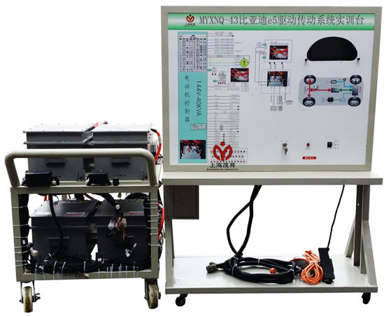 比亞迪e5驅(qū)動傳動系統(tǒng)實訓臺,比亞迪e5驅(qū)動傳動系統(tǒng)實訓裝置,比亞迪e5驅(qū)動傳動系統(tǒng)實訓設備選用原裝純電動轎車高壓電控總成和永磁同步電機,原裝配套變速箱和傳動軸,高壓動力線和低壓控制線與動力電池和管理系統(tǒng)實訓臺對接,實訓臺保留原車功能,真實展示純電動轎車電驅(qū)動傳動系統(tǒng)核心零部件之間的連接控制關(guān)系、安裝位置和運行工況,以及高壓系統(tǒng)安全注意事項,培養(yǎng)學員對純電動轎車電驅(qū)動傳動系統(tǒng)故障分析和處理能力。